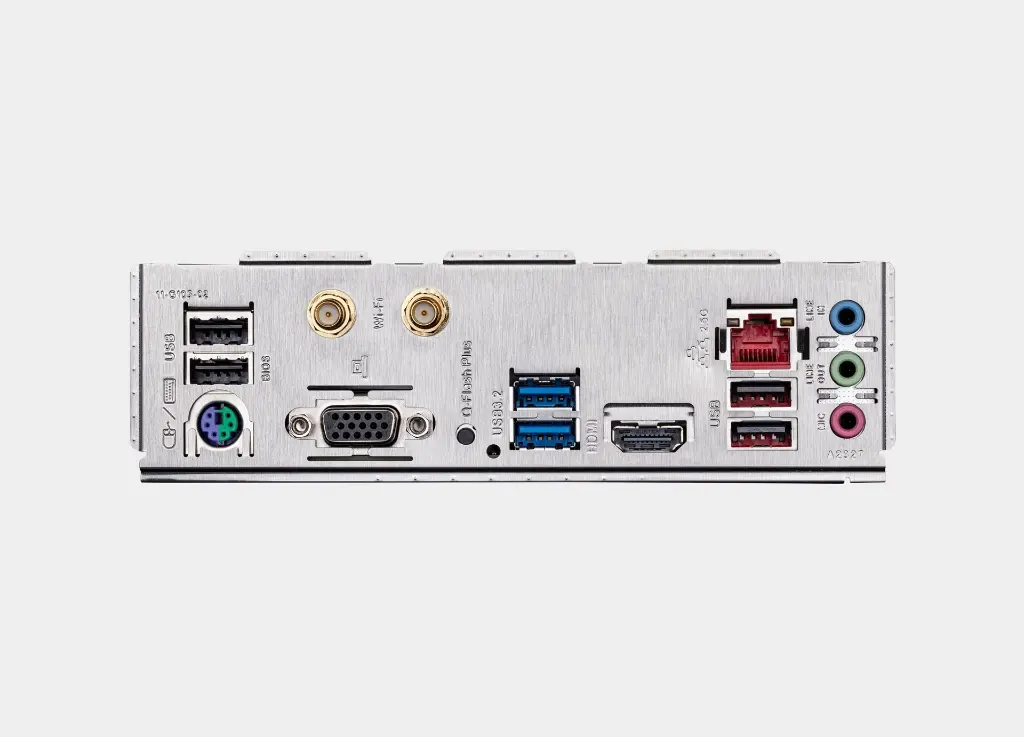 - منافذ متعددة: توفر منافذ USB 3.2 Gen 1 و HDMI و D-Sub، بالإضافة إلى زر Q-Flash Plus الذي يتيح لك تحديث BIOS بدون الحاجة لتركيب المعالج أو الرامات أو كارت الشاشة.